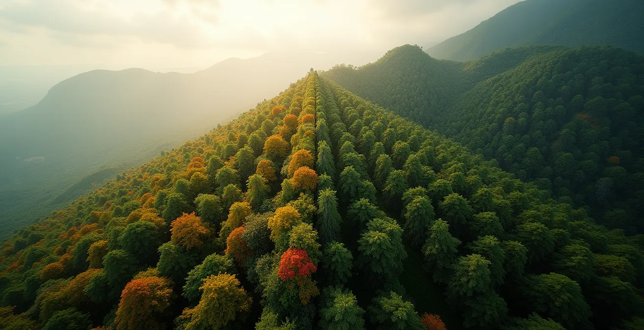 Sur les sentiers du GR R1, autour du majestueux Piton des Neiges, le randonneur est souvent saisi par l’omniprésence du vert. Pourtant, sous cette couleur unificatrice se cachent des mondes radicalement différents. Savoir distinguer une forêt primaire de bois de couleurs d’une plantation de cryptomerias n’est pas qu’une simple question de botanique. C’est la clé pour véritablement comprendre l’écologie de La Réunion, son histoire et la fragilité de ses écosystèmes. Beaucoup de marcheurs passent à côté de cette richesse, voyant une « forêt » là où se côtoient en réalité un trésor de biodiversité et une culture d’exploitation forestière.