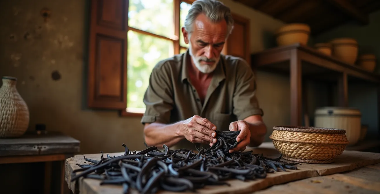 Parfois, vous observerez de fins cristaux blancs à la surface de la gousse, un phénomène appelé « givre ». Loin d’être un défaut, c’est le signe d’une concentration exceptionnelle en vanilline, la molécule aromatique principale. Cette vanille « givrée » est particulièrement recherchée par les connaisseurs pour sa puissance. Le prix est aussi un indicateur. Une vanille bradée est souvent suspecte. Sur les marchés locaux, comptez environ un euro pour une gousse de qualité, un tarif qui peut monter selon la taille et la qualité.