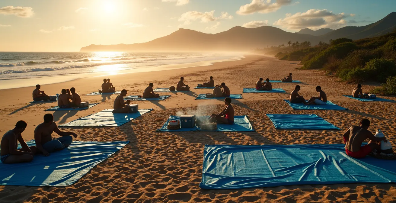 Arriver à l’aube n’est pas un caprice, c’est une stratégie. Il s’agit de s’assurer le meilleur emplacement : celui qui est à l’ombre des filaos, pas trop loin de l’eau mais à l’abri des marées, proche d’un point d’eau si possible, et avec un « foyer » (les emplacements aménagés pour le feu) déjà existant. C’est une véritable « guerre de territoire » bon enfant où la règle est simple : premier arrivé, premier servi. Une fois la bâche posée, l’emplacement est revendiqué pour la journée. Les familles envoient souvent un ou deux membres en éclaireur dès 5h30 du matin pour réserver le spot idéal avant l’arrivée du reste de la troupe avec les marmites.