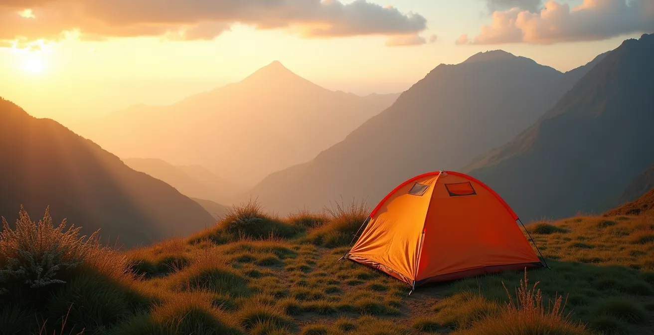 La règle fondamentale du bivouac à La Réunion est simple : on monte sa tente au crépuscule, on la démonte à l’aube. Cette contrainte n’est pas faite pour vous compliquer la vie. C’est une discipline du bivouaqueur, un rituel de respect envers un environnement exceptionnel et fragile. Il s’agit de minimiser votre impact visuel et écologique, de vous fondre dans le paysage le temps d’une nuit, puis de disparaître sans laisser de trace. Ce n’est pas du camping, où l’on s’installe pour plusieurs jours. C’est un passage éphémère.
